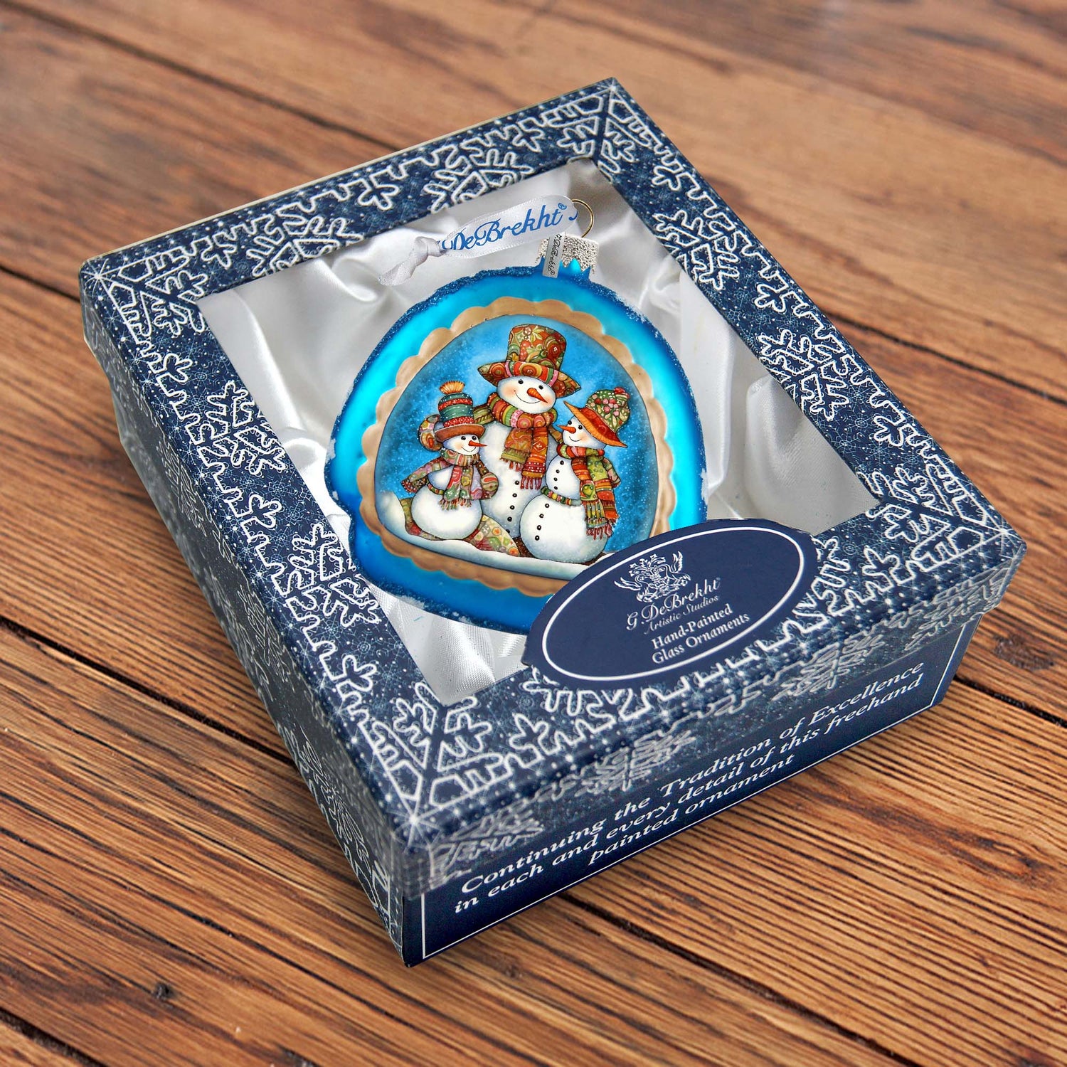 Adorno de vidrio arcoíris con familia de muñecos de nieve de G. Debrekht - Decoración navideña de Papá Noel - 756-020