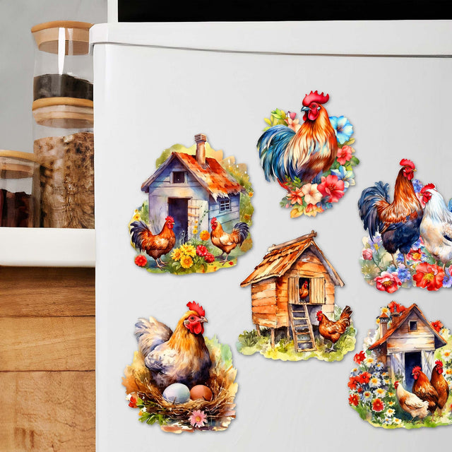 Juego de 6 imanes decorativos de madera "Primavera en la granja" de G. Debrekht - Decoración de Pascua - 8090056G-S6