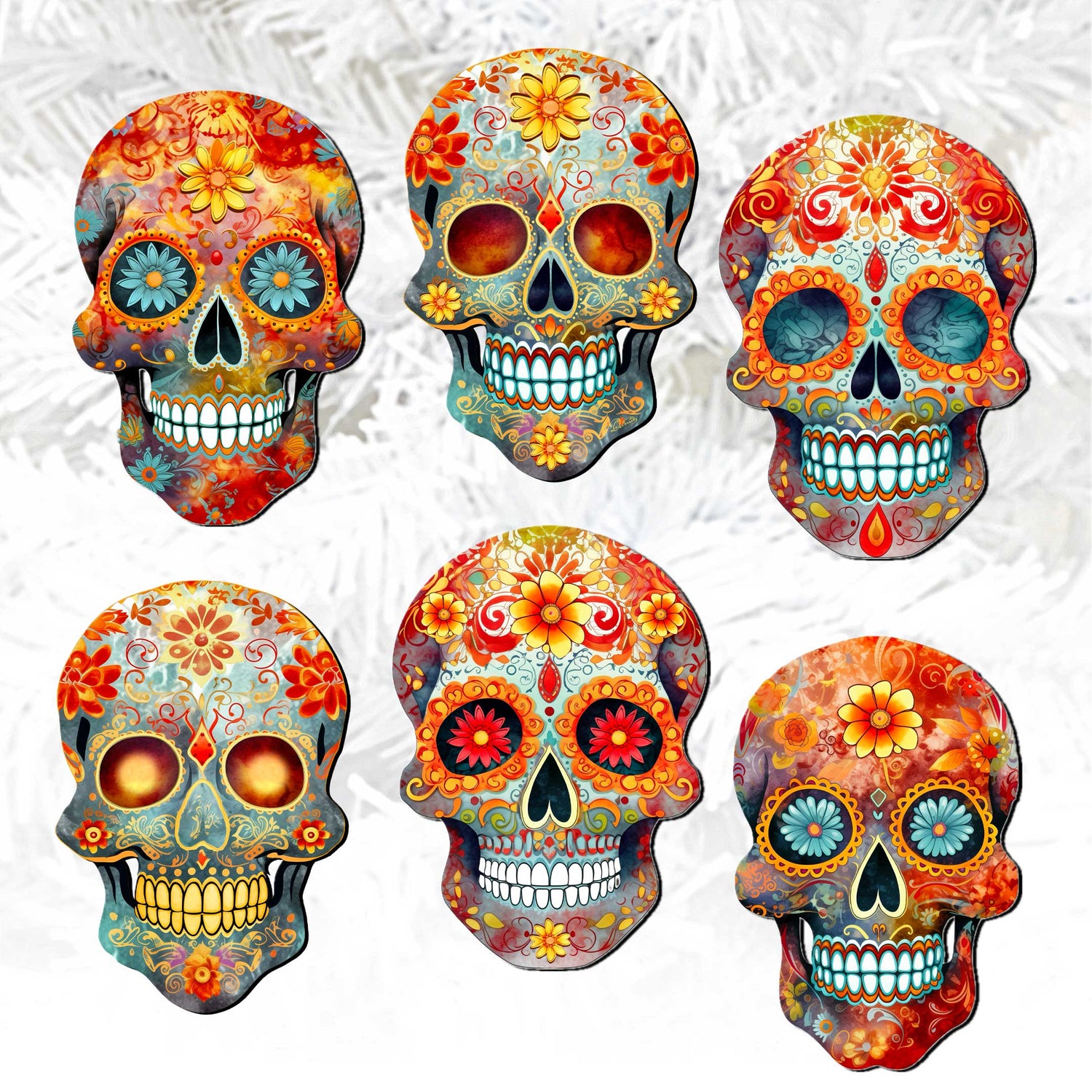 Adornos decorativos de madera con forma de calavera de azúcar (6 unidades) de G. Debrekht - Decoración de Halloween - 8090071C-S6