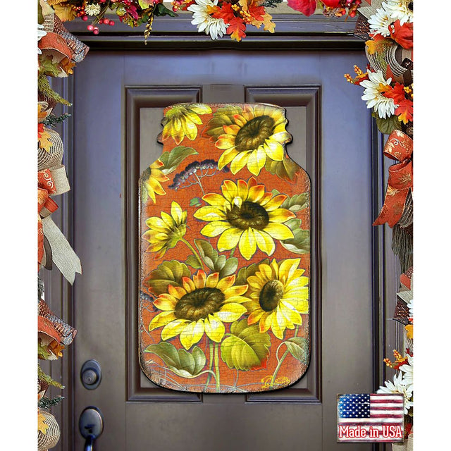Decora tu puerta principal con un tarro de cristal con forma de girasol de la tienda navideña oficial de G. Debrekht. Ofrecemos ideas decorativas para Halloween para cualquier época del año y festividad. Hecho 100 % en EE. UU.