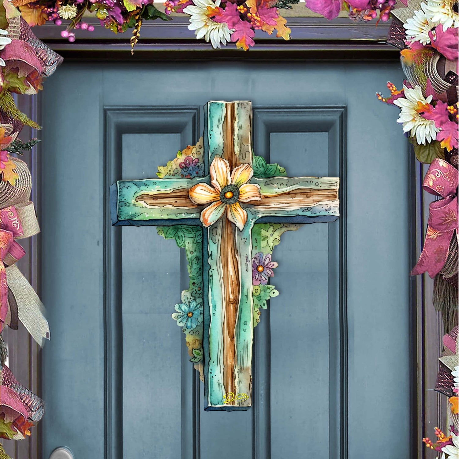 Decoración navideña para puerta con cruz verde azulado de G. Debrekht - Decoración de primavera y Pascua - 8688164H