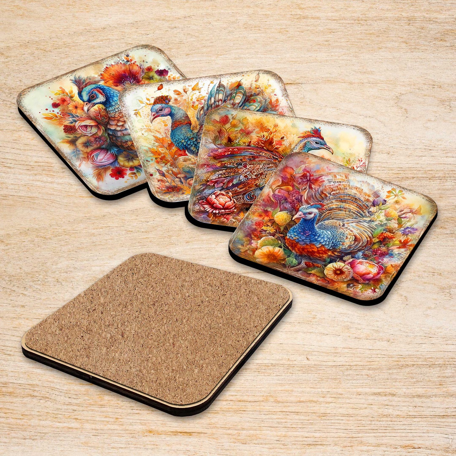 Juego de 4 posavasos de corcho de madera con forma de pavo de G. Debrekht - Decoración de Acción de Gracias - 8199437C-S4