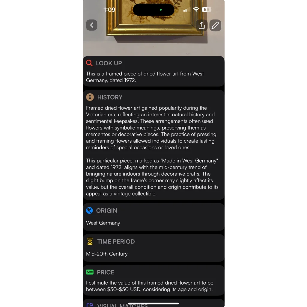- Description: Get ready to be wowed by this stunning piece of vintage dried flower art from West Germany, dated 1972! This isn't just any old framed artwork – it's a slice of history that'll transport you back to the groovy '70s!