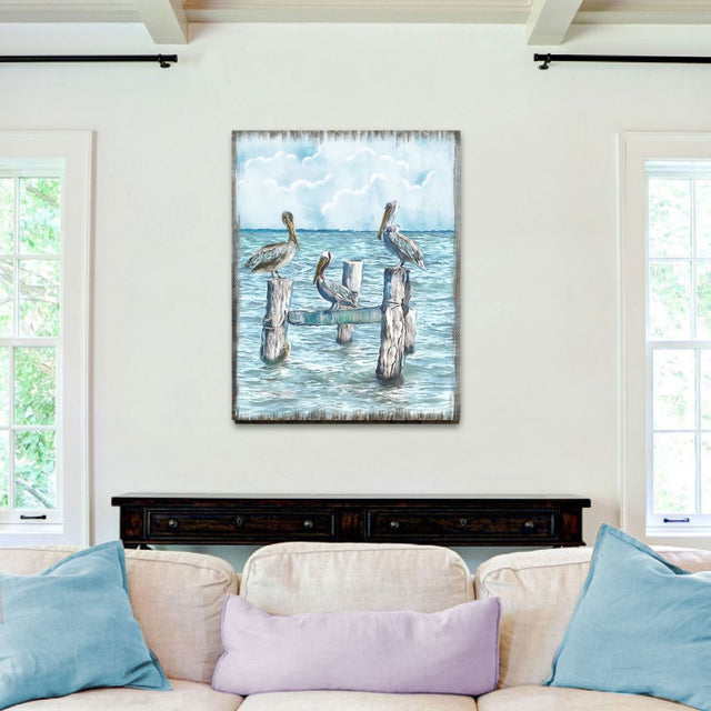 Compra la obra rústica de arte de pared de madera "Esperando una Pesca" de Pelícanos en nuestra tienda de Hogar y Vida, con una infinidad de diseños únicos de artistas de renombre mundial. Cuélgala en tu casa, dormitorio o apartamento. 100 % hecha a mano en EE. UU.
