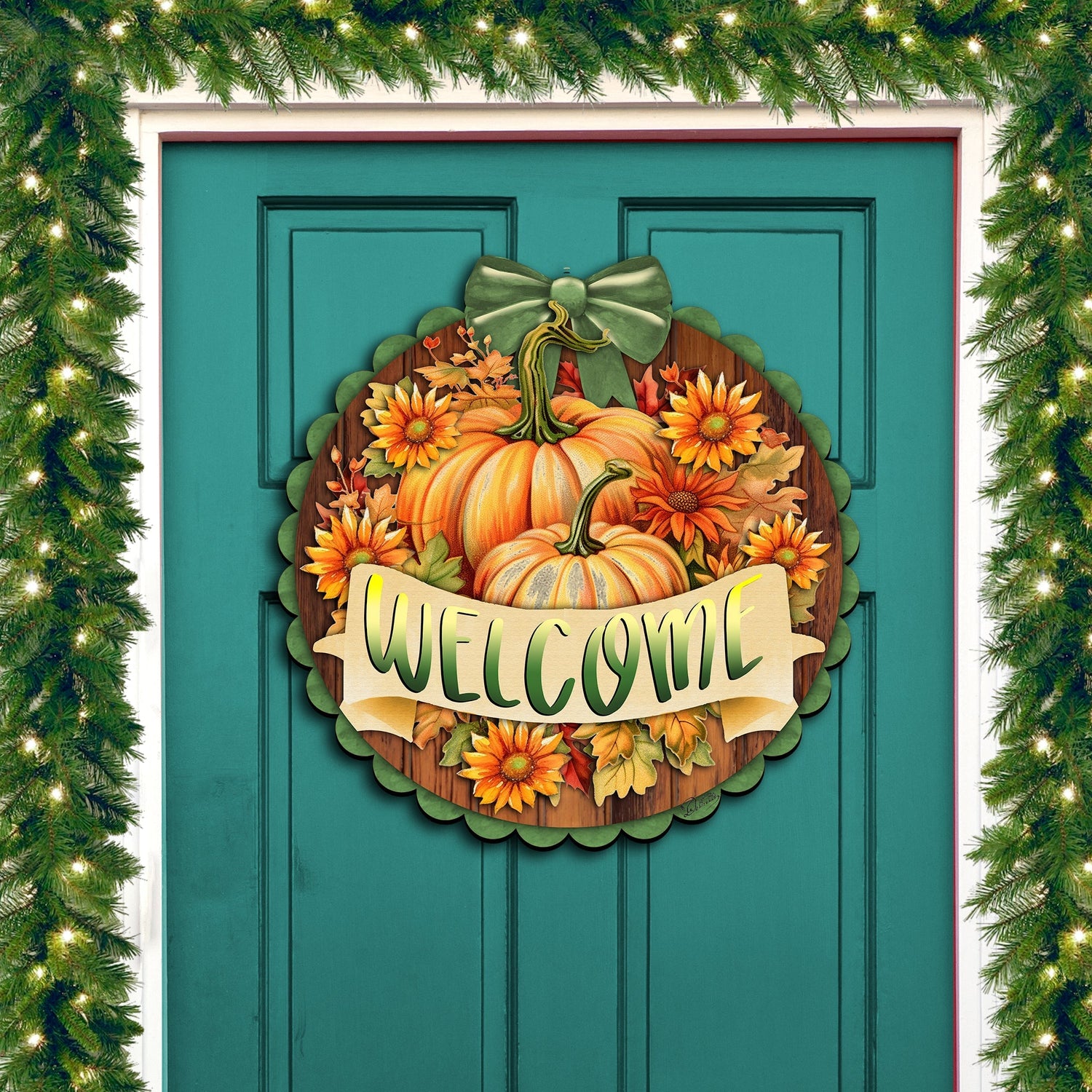 Letrero de bienvenida para puerta de entrada, decoración de madera para porche delantero de G. Debrekht, decoración de Acción de Gracias y Halloween - 933123H