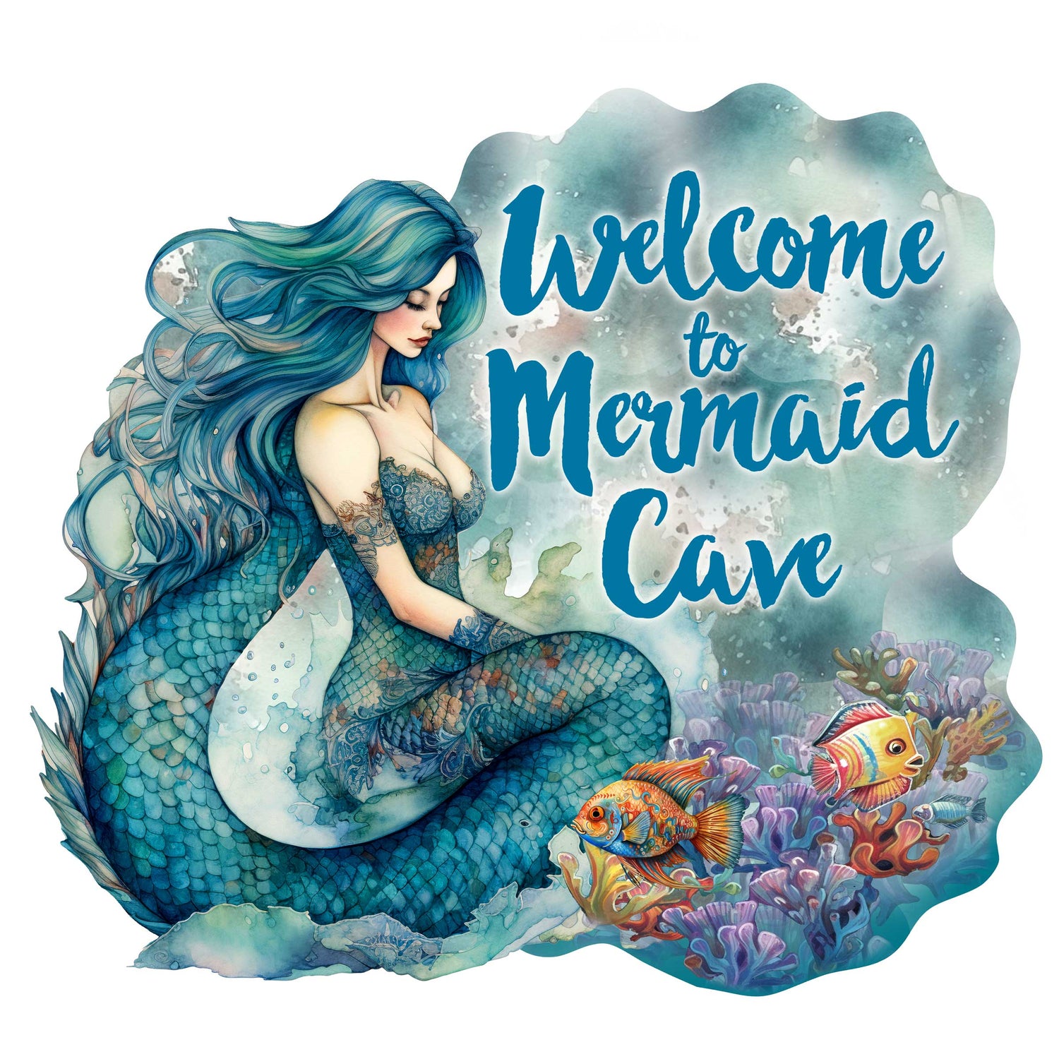 Bienvenido a Mermaid Cave - Letrero de bienvenida para puerta de entrada Pancarta de entrada principal Letrero de bienvenida - Decoración de porche delantero de madera - 933112H