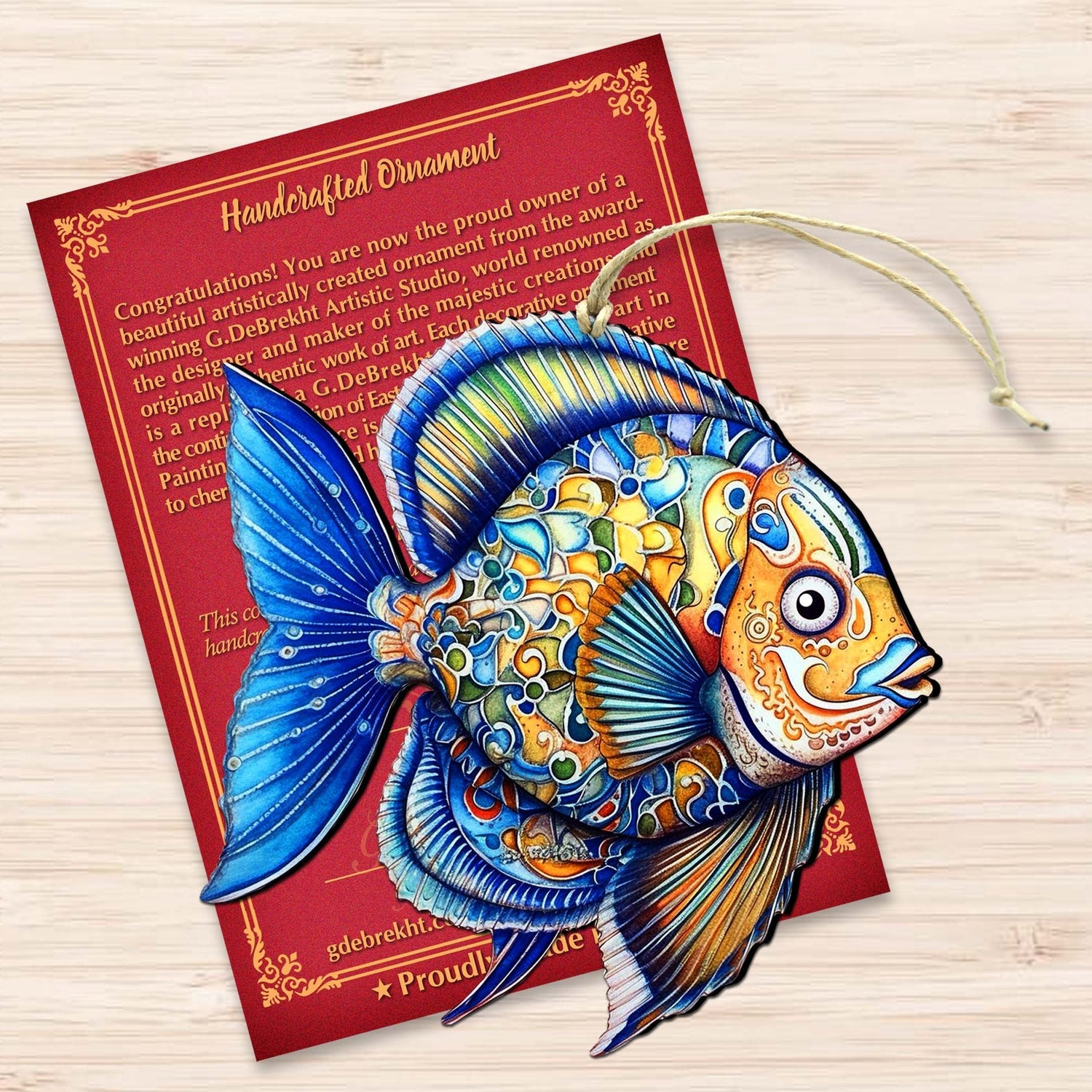 Adornos navideños de madera - Adornos de madera con forma de pez azul de G.Debrekht Coastal Holiday Decor - 8688301