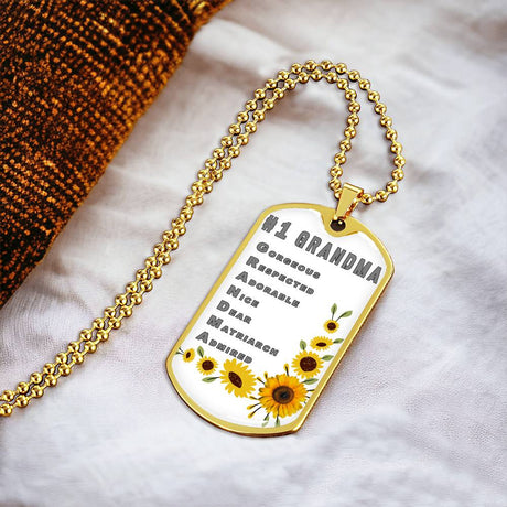 #1 Grandma Personalized Dogtag Necklace Gold Mo...
