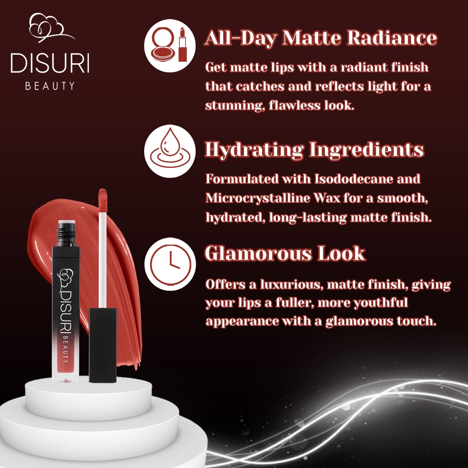 Heavenly color, unstoppable confidence. "Dropped Out of Heaven" by DISURI Beauty delivers a fierce, fiery red with a long-lasting matte finish—because beauty should never compromise on boldness or ethics.