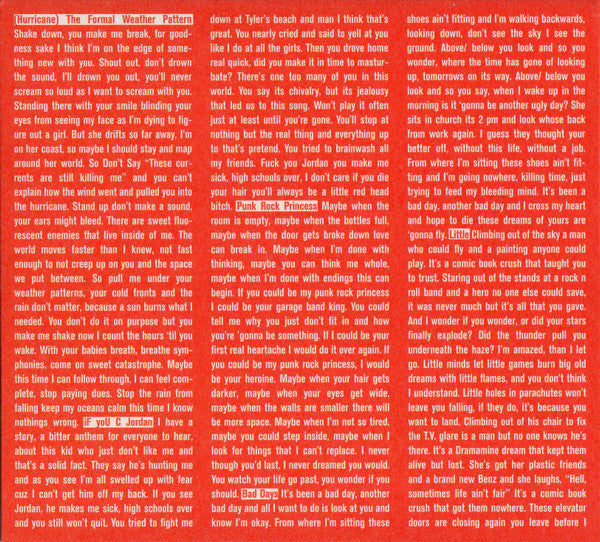 Except "(Hurricane) The Formal Weather Pattern" (Captain Toth Music) ASCAP