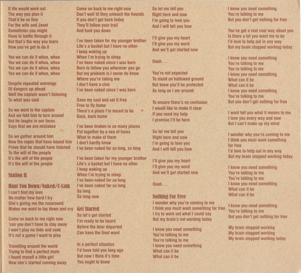 Tracklist: 1. Opening Station, 2. I Don't Know, 3. Come On To Me, 4. Happy With You, 5. Who Cares, 6. Fuh You, 7. Confidante, 8. People Want Peace, 9. Hand In Hand, 10. Dominoes, 11. Back In Brazil, 12. Do It Now, 13. Caesar Rock, 14. Despite Repeated Warnings, 15. Station II, 16. Hunt You Down / Naked / C-Link, 17. Get Started, 18. Nothing For Free