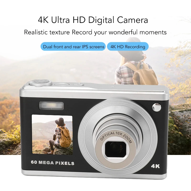 Appareil photo numérique 60MP 4K Ultra HD Double écran Automatique