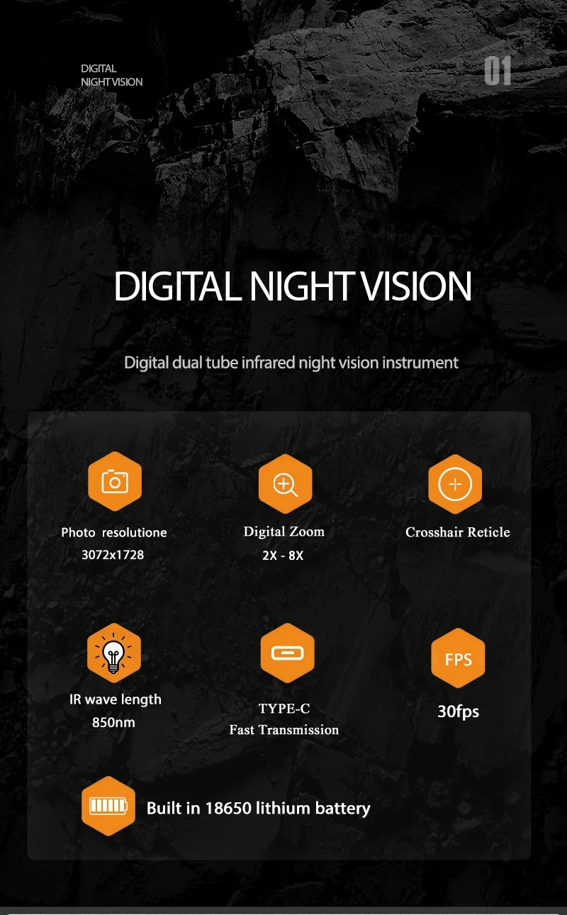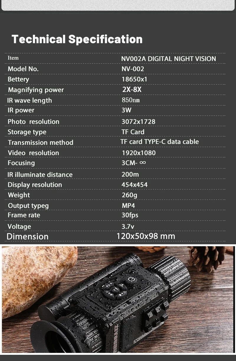 Nom du produit : Lunette de chasse monoculaire de vision nocturne numérique infrarouge