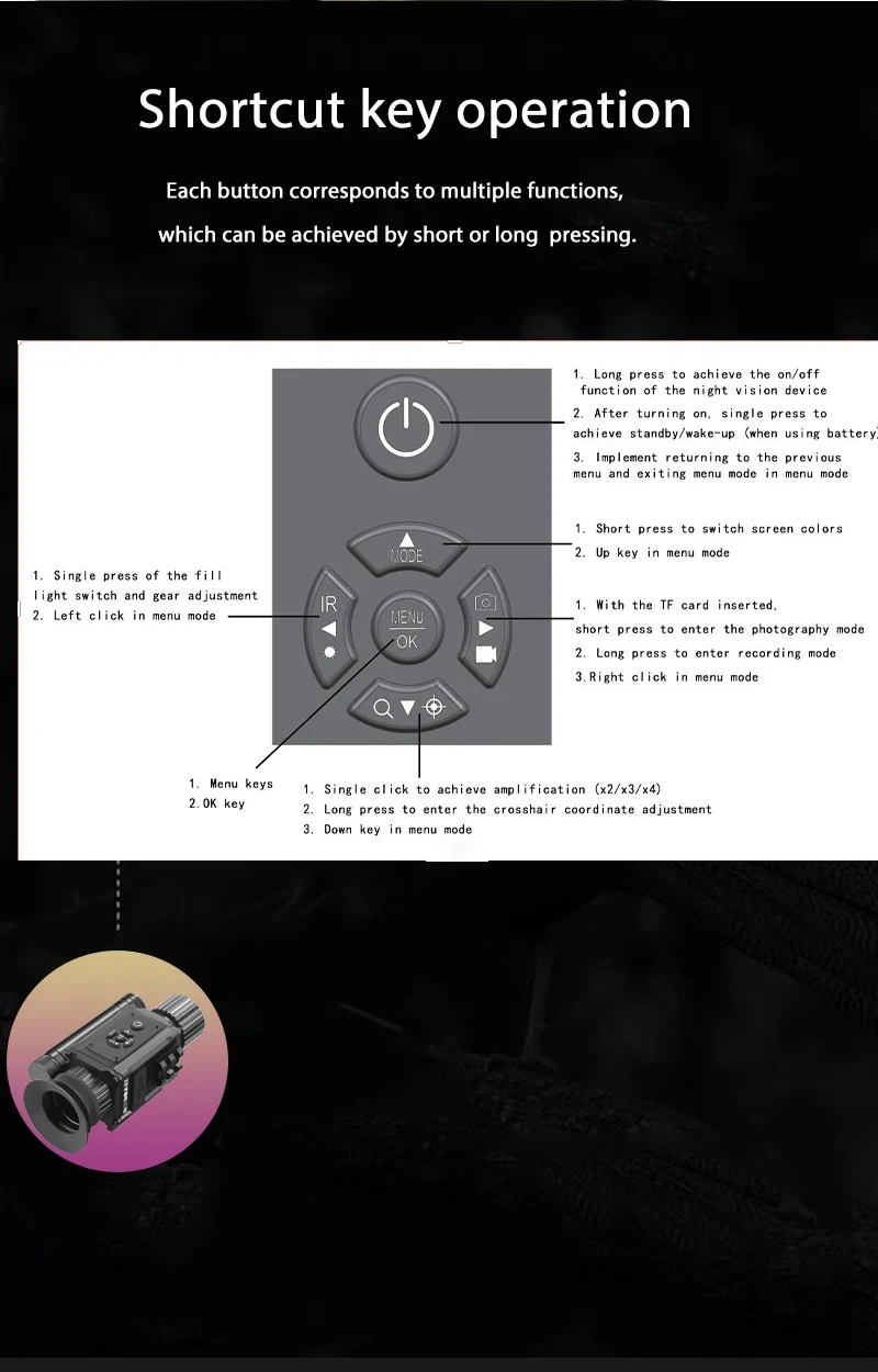 NV002M Caméra de vision nocturne numérique 1080P Caméra vidéo monoculaire infrarouge Mode d'image multiple Lunette de visée nocturne de chasse en croix