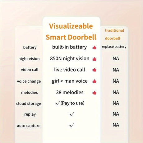 Smart Video Doorbell with HD Camera, Visual Doo...