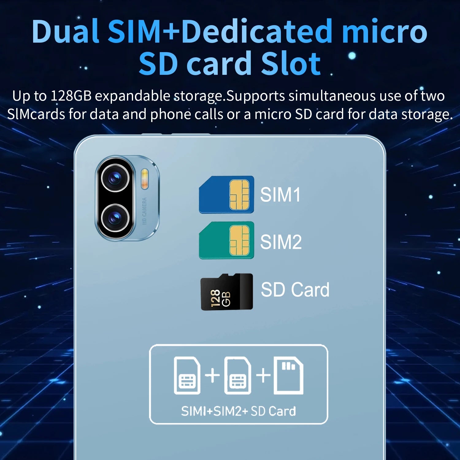 Mémoire externe : carte TF jusqu'à 128 Go (non incluse)