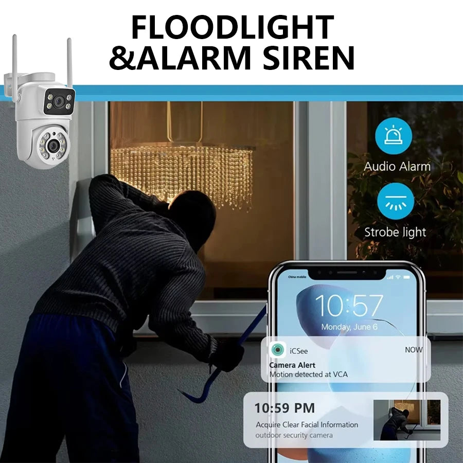 Caméra de surveillance extérieure 4MP, double objectif, double écran, suivi automatique par IA, vidéo IP, Wifi, PTZ, audio bidirectionnel, ICSEE
