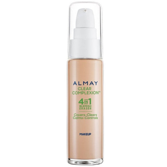 Almay Clear Complexion makeup helps clear and prevent acne blemishes while it conceals, so your complexion looks beautiful, shine-free and even all day. Formula with 4-in-1 Blemish Eraser covers, clears, calms and controls.