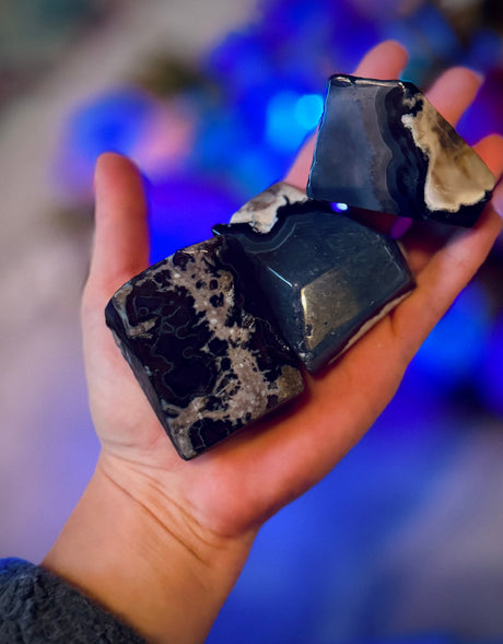 Volcano Agate Crescent Moon, UV Green Fluoresce...