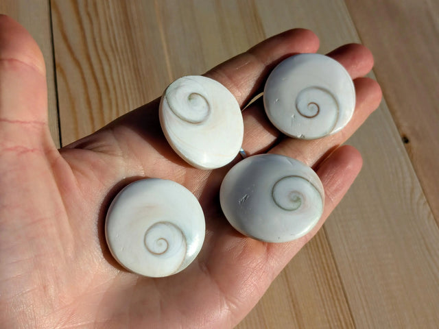 Shiva eyes, also known as Pacific Cat's Eye, are incredible little shells that have great metaphysical purpose. Sourced from the Turban snail and found in seabeds in Indonesia and Australia, we ensure these shells are never sourced from living snails and are found discarded on the ocean floor after the snail has passed of natural causes. This part of the shell was used as a "doorway" that the snail would close to protect itself from predators and from drying out in low tides. As such, this stone is a gateway for the Third Eye, opening us to our intuitive selves and our higher consciousness. It is wonderful to keep close to the body on a regular basis for spiritual protection and to promote peace and calm.