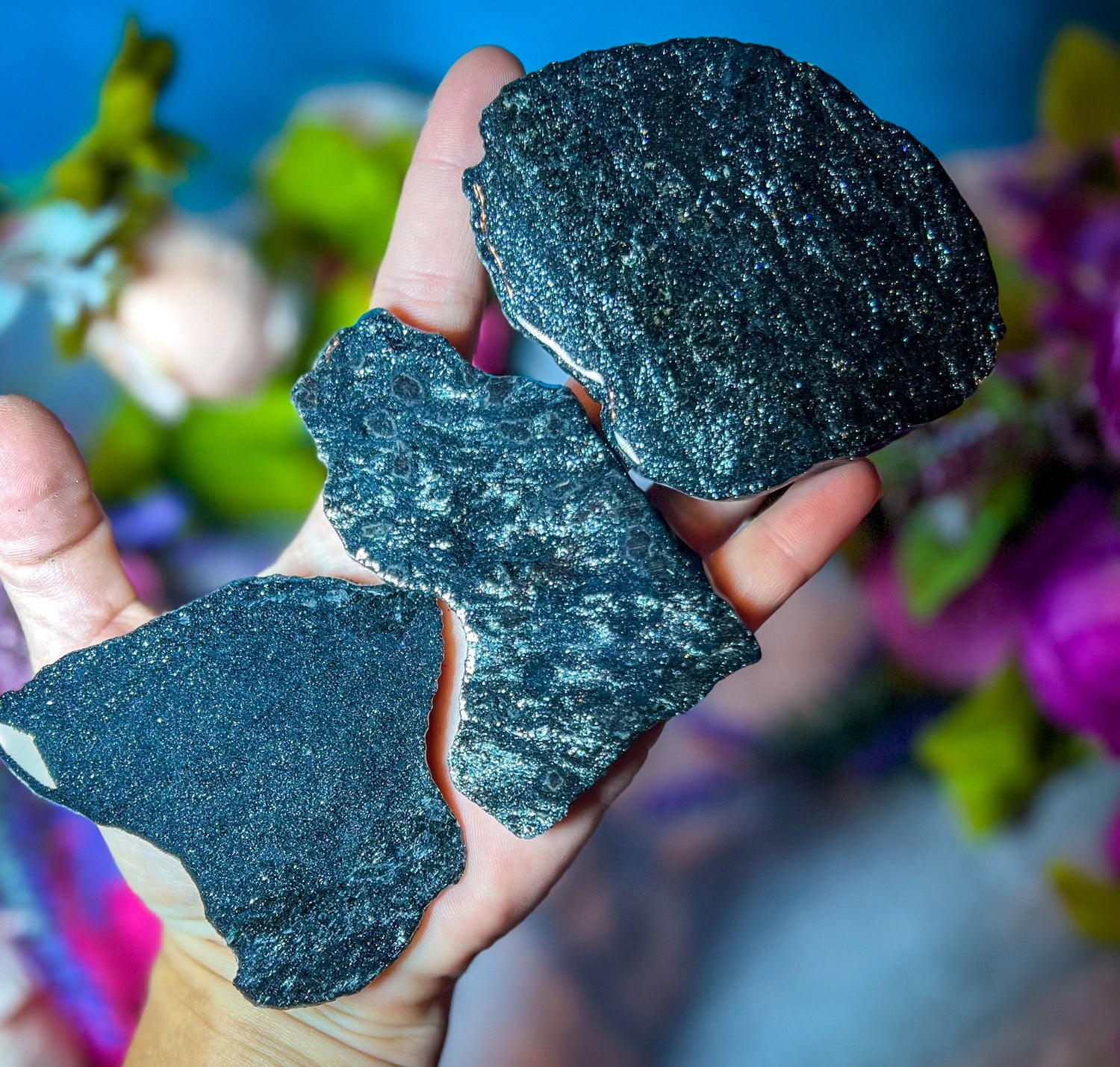 Whether displayed as a centerpiece in your home or used as a decorative accent in your sacred space, these specular hematite slabs are sure to inspire awe and wonder. Each slab is a unique masterpiece, with its own natural variations in color and texture, making it a one-of-a-kind addition to your collection.