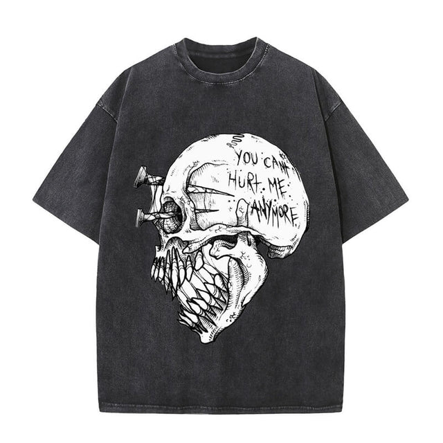 Elevate your street style and express your rebellious spirit with our "You Can't Hurt Me Any More" Skull T-shirt. Crafted from premium cotton and vintage washed for a soft, worn-in feel, this tee features a bold skull graphic that adds edgy flair to any outfit. Whether you're hitting the streets or rocking out at a concert, this tee is sure to make a statement. Embrace your individuality and stand out from the crowd with our vintage-inspired skull tee.