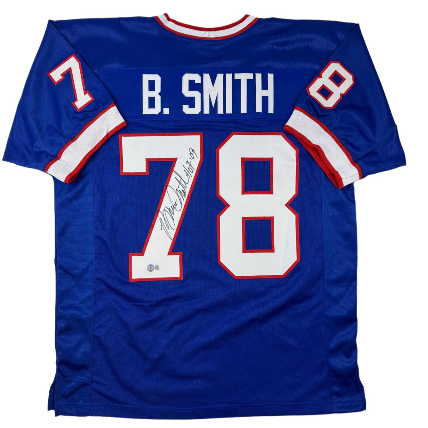Autographed/Signed Bruce Smith HOF 09 Buffalo Blue Football Jersey Beckett BAS COA