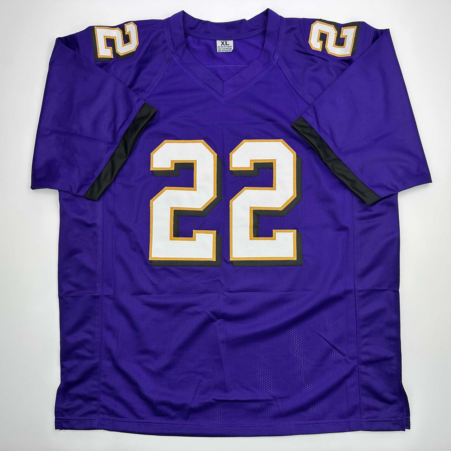 Jersey has no brand names or logos. This is a custom jersey and was not manufactured by or in any manner associated with any professional sports league or manufacturer. This custom jersey carries no professional sports league designation. The item is intended to be an autographed collectible. The custom jersey displays the name and number of the player. This item in no way is affiliated with or connected to any professional sports organization. Size is XL.