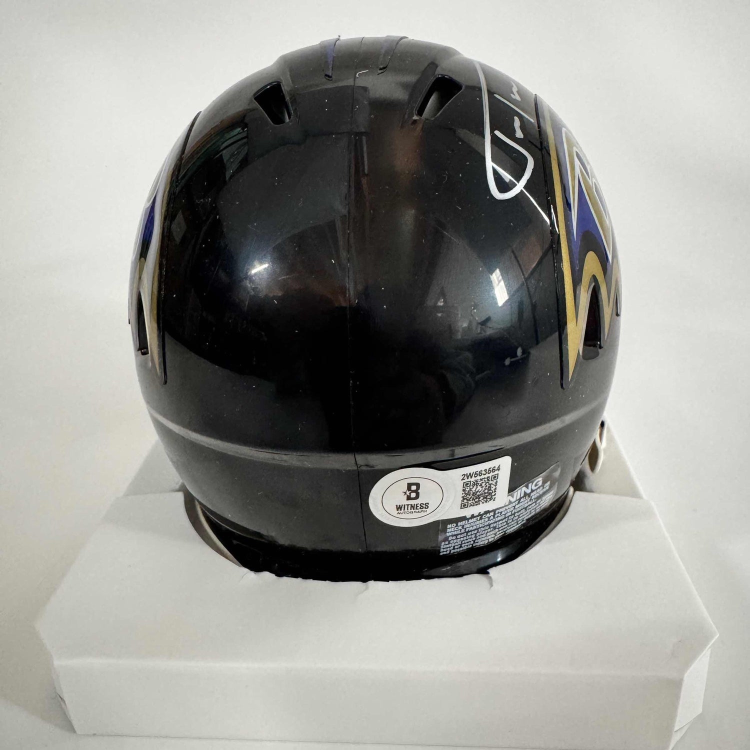 Autographed/Signed Justin Tucker Baltimore Ravens Mini Football Helmet Beckett BAS COA