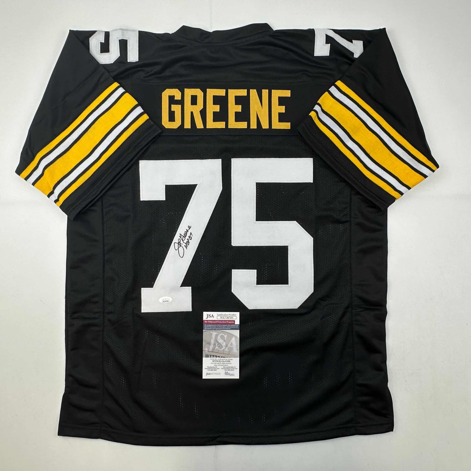 Autographed/Signed Mean Joe Greene HOF 87 Pittsburgh Black Football Jersey JSA COA