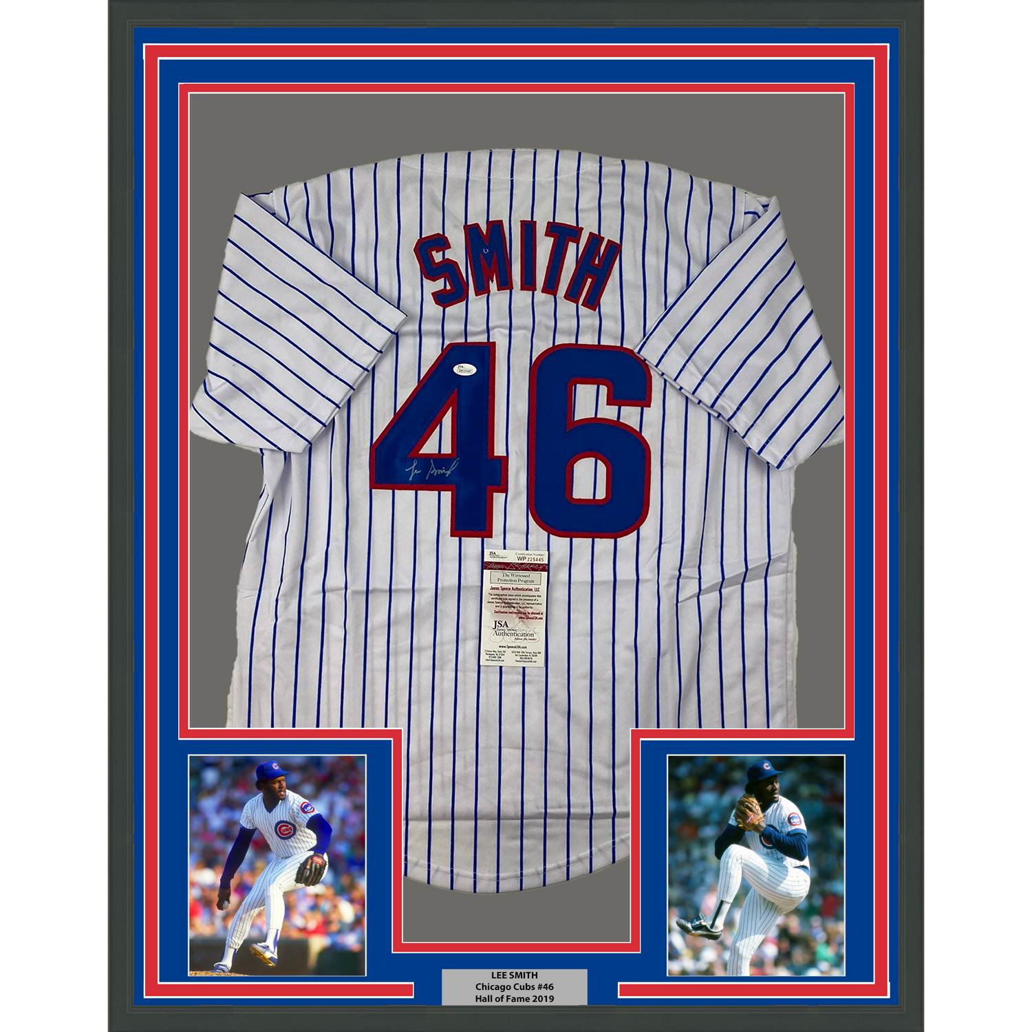 Framed Autographed/Signed Lee Smith 35x39 Chicago Pinstripe Baseball Jersey JSA COA