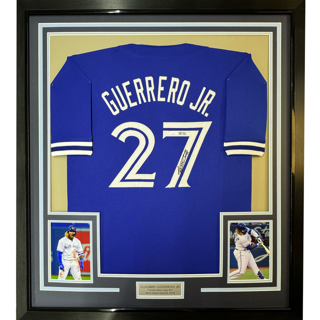 Framed Autographed/Signed Vladimir Vlad Guerrero Jr. 35x39 Toronto Blue Baseball Jersey PSA/DNA COA