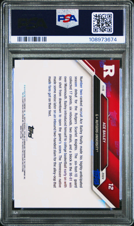 Graded 2024 Topps Bowman U Now Ace Bailey #12 R...