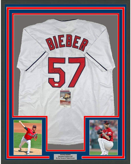 Framed Autographed/Signed Shane Bieber 35x39 Cl...