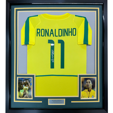 Framed Autographed/Signed Ronaldinho 35x39 Braz...