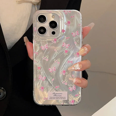 Lily Flower Print Clear Wave Phone Case For iPhone
