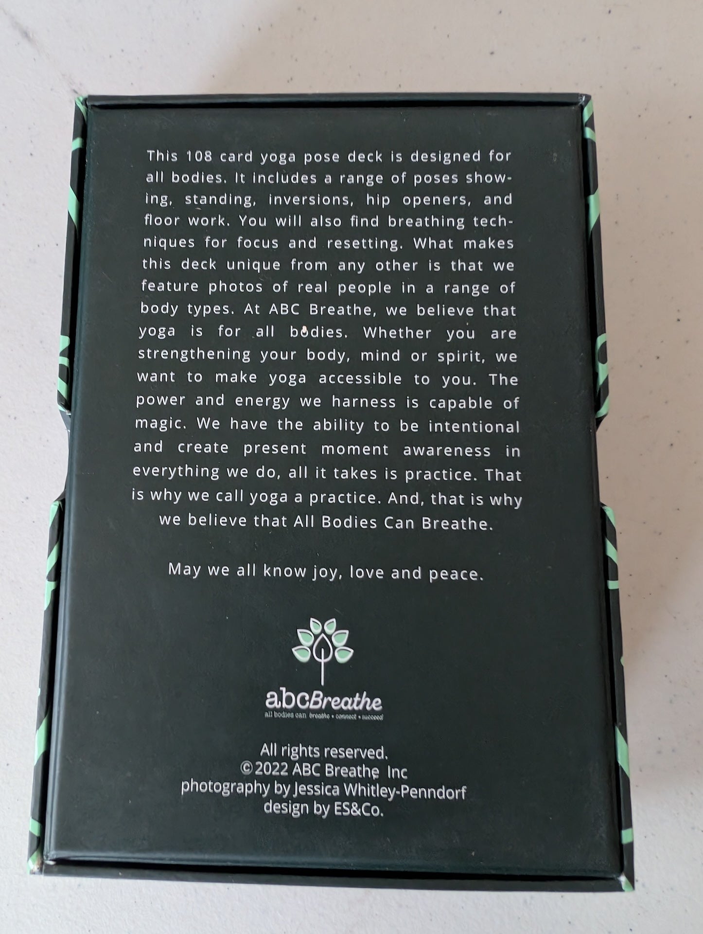 This 108 card yoga pose deck is the first, designed for all bodies. It features a range of poses including, standing, inversions, hip openers, floor work and mediations. You will also find breathing techniques for focus and resetting. What makes this deck unique from any other is that we feature photos of real people in a range of body types. At All Bodies Can (ABC) Breathe, we believe that yoga is for all bodies. Whether you are strengthening your body, mind or spirit, we want to make yoga accessible to you. The power and energy we harness is capable of magic. We have the ability to be intentional and create present moment awareness in everything we do, all it takes is practice. That is why we call yoga a practice. And, that is why we believe that All Bodies Can Breathe.