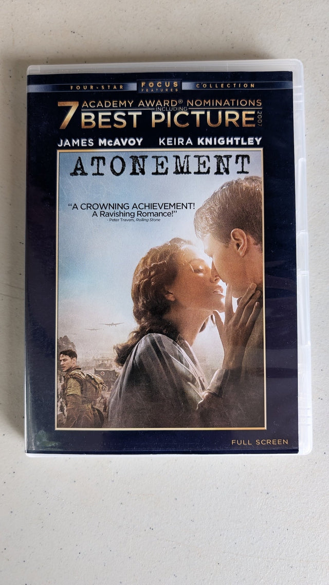 Atonement (DVD, 2007, R) James McAvoy, Keira Knightley, Saoirse Ronan