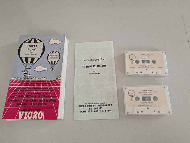 TRIPLE PLAY by MIKE PIERONE CRYPTO-SOLVE CROSSWORDS WORD SEARCH TP-20 VIC 20 CASSETTE FOR VIC20