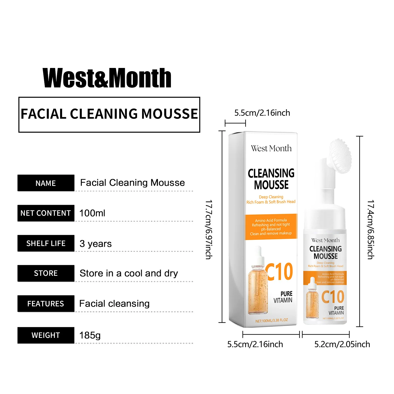 West Month Vitamin C Facial Cleanser Gentle Cleansing Anti Acne Oil Control Pore Shrinking Brightening Moisturizing Amino Acid Face Wash 100ml