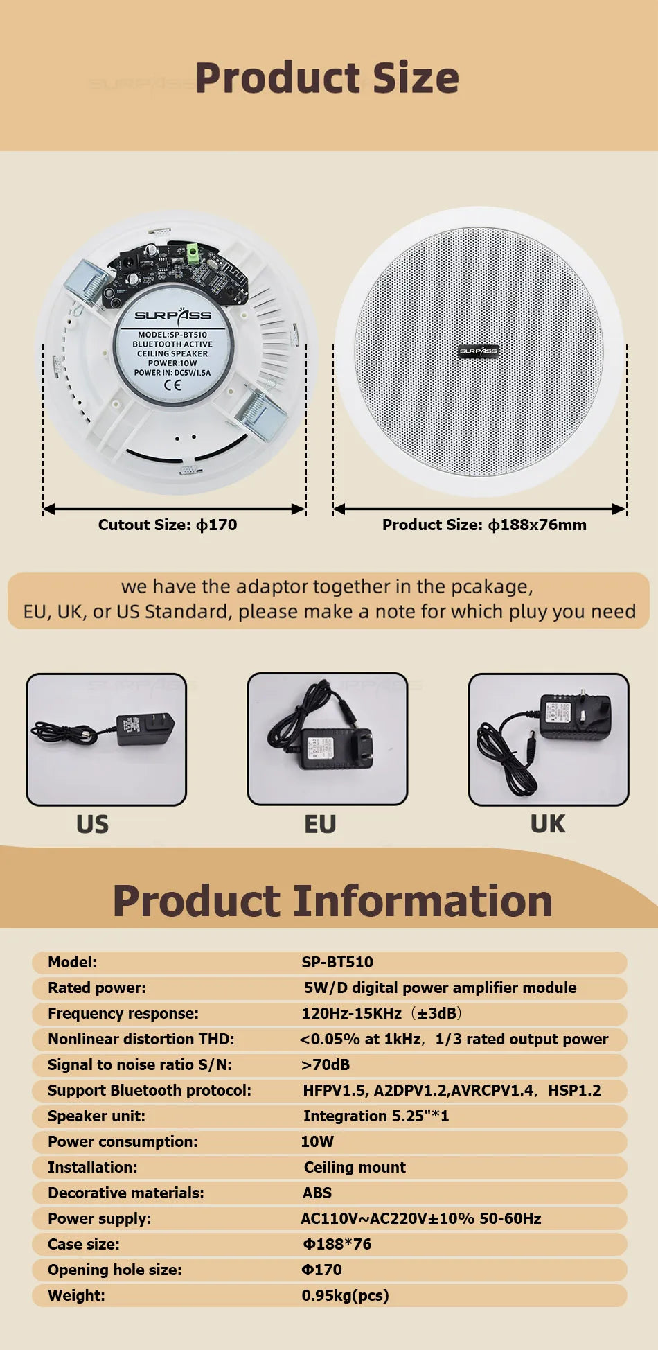 Amplificateur de classe D intégré, haut-parleur de plafond compatible Bluetooth à gamme complète, pour musique de fond de cinéma maison, bonne qualité - Adaptateur américain / CHINE / Haut-parleur Bluetooth est en rupture de stock et sera expédié dès qu’il sera de retour en stock.