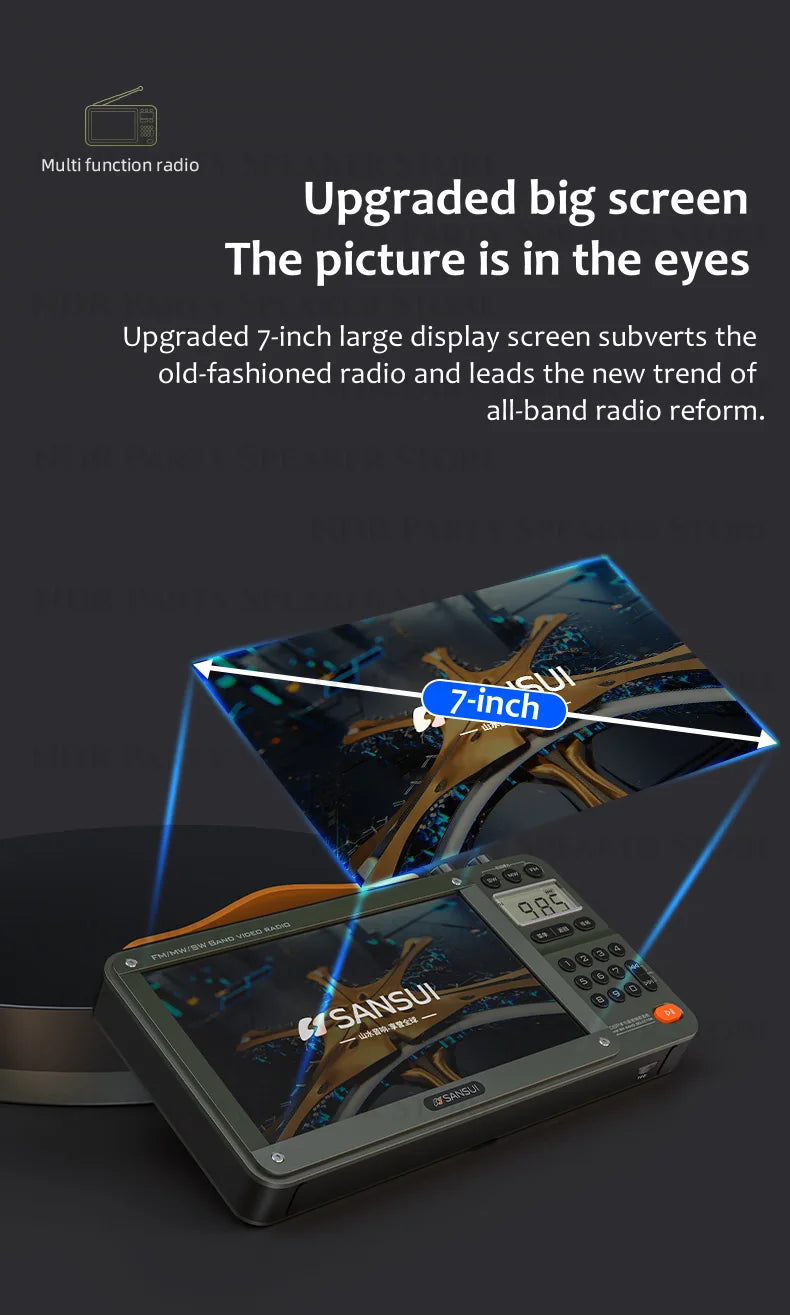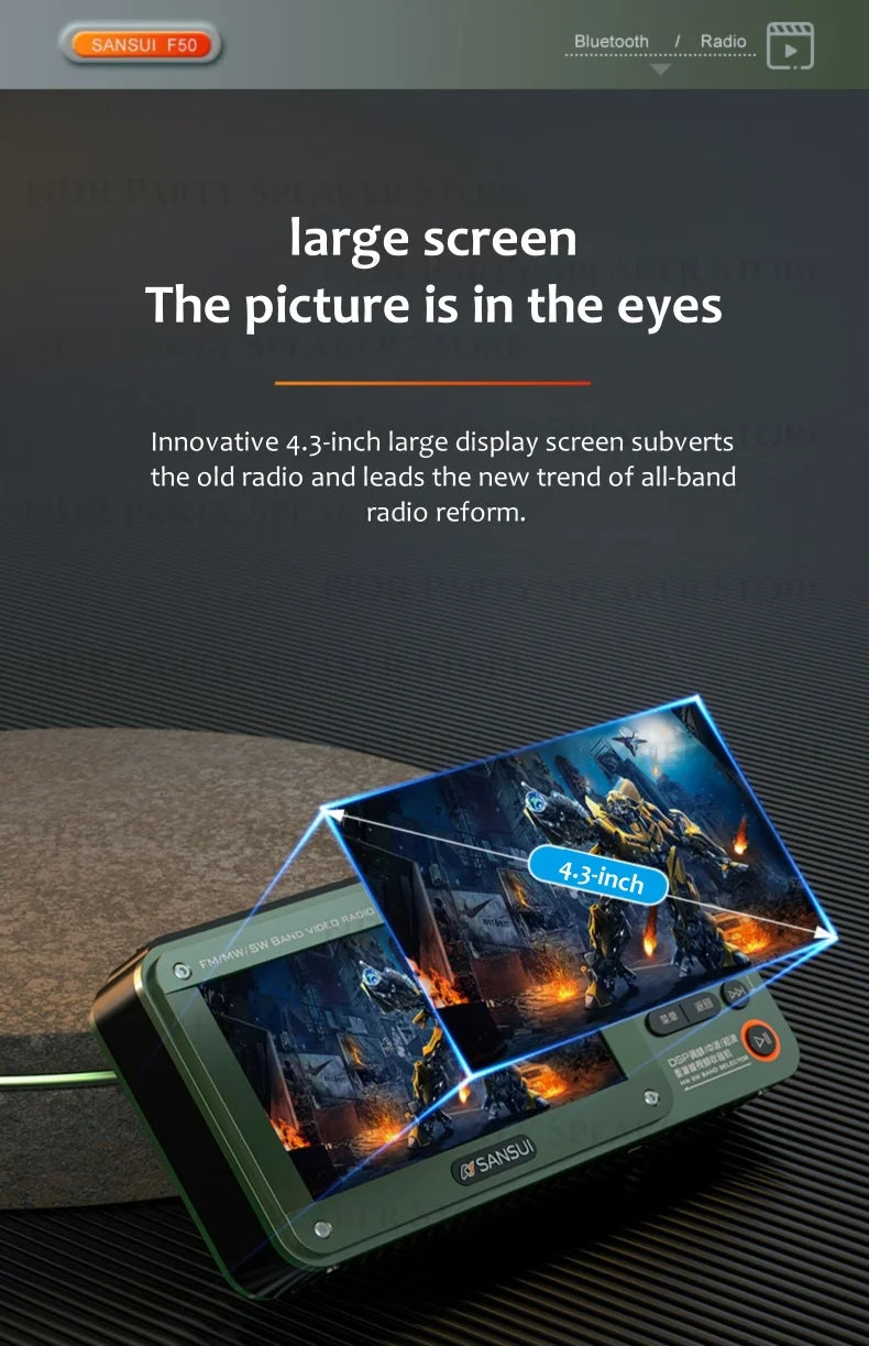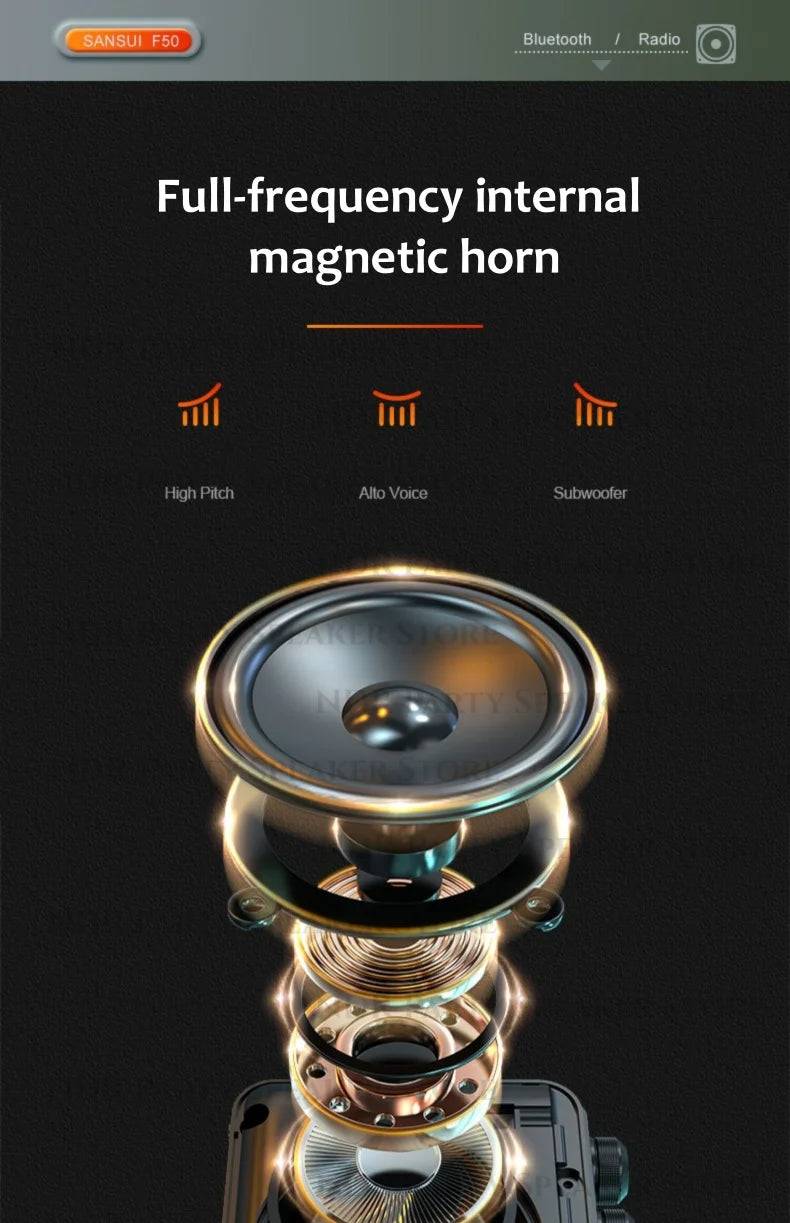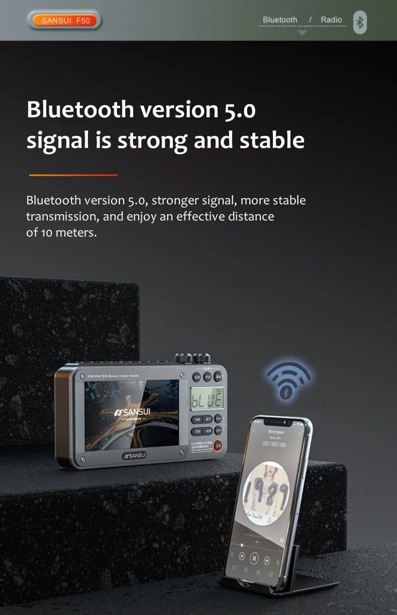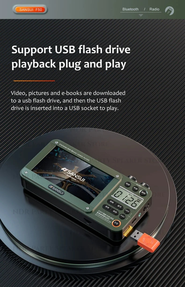 Enceintes Bluetooth sans fil SANSUI, radio pleine bande, lecteur vidéo LED HD, baladeur MP4 portable, batterie rechargeable intégrée