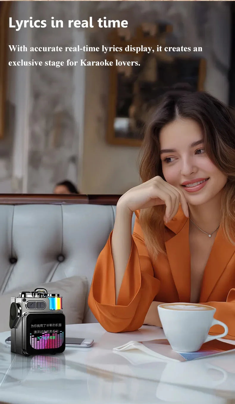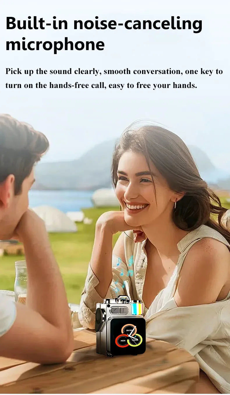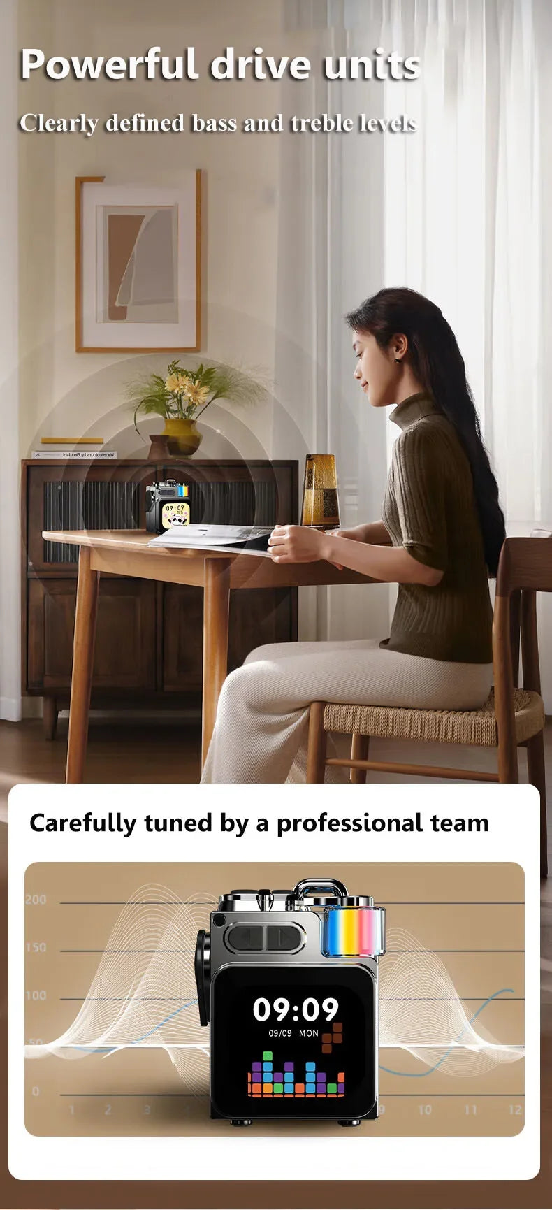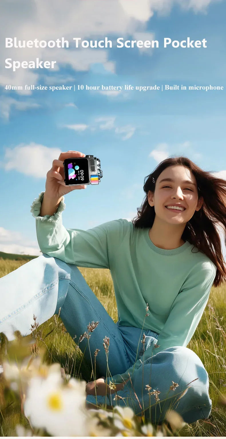 Mini haut-parleur Bluetooth intelligent à écran tactile, lecteur audio portable, appel mains libres sans fil, boîte à musique MP3, prise en charge de la lecture TF, contrôle par application