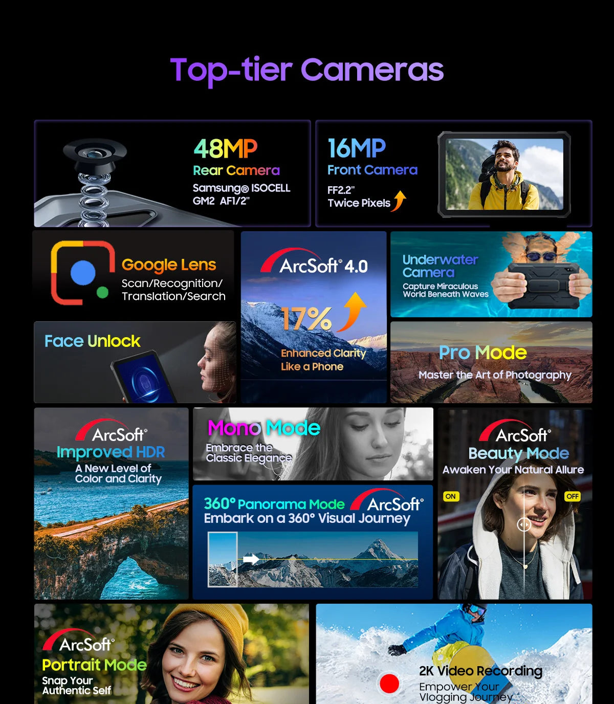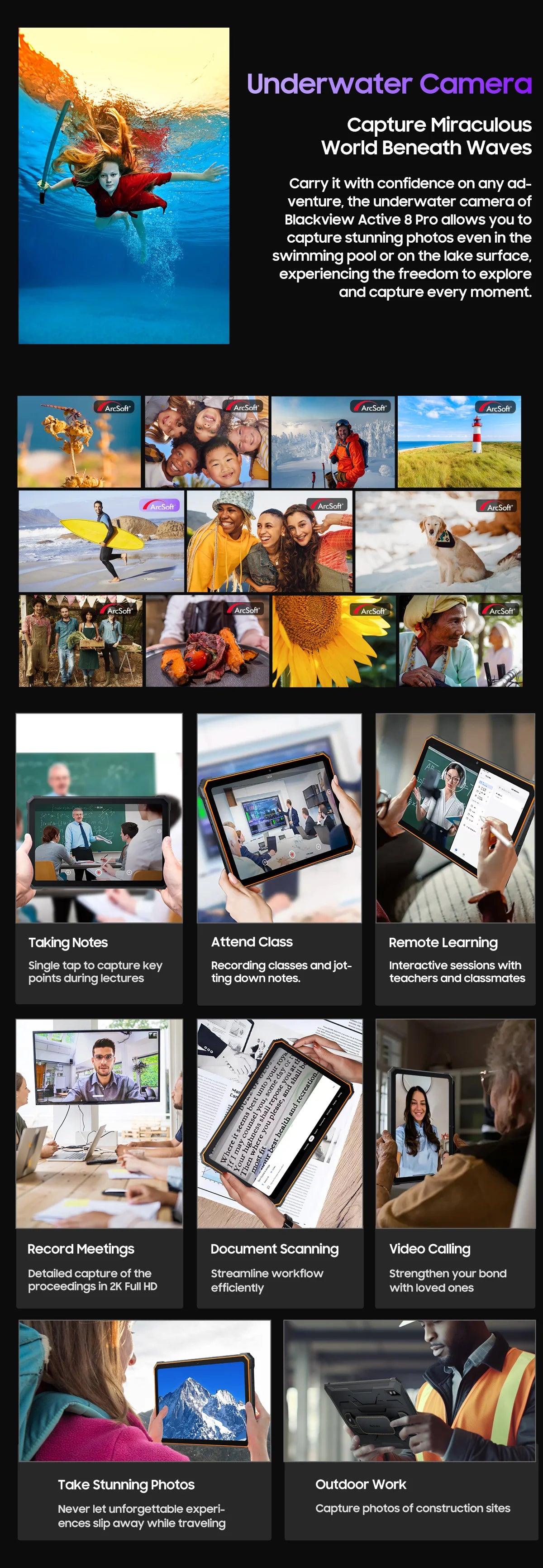 Emportez-le en toute confiance dans n'importe quelle aventure, la caméra sous-marine du Blackview Active 8 Pro vous permet de capturer de superbes photos dans la piscine ou à la surface du lac, en découvrant la liberté d'explorer et de capturer chaque instant.