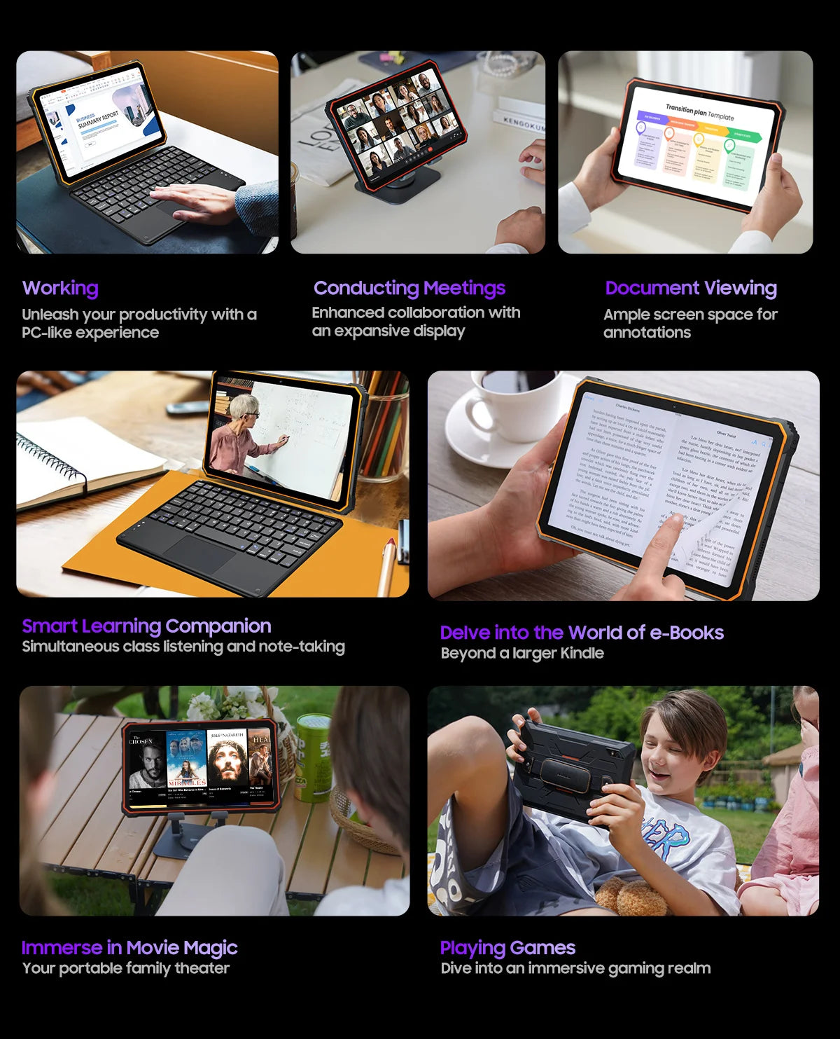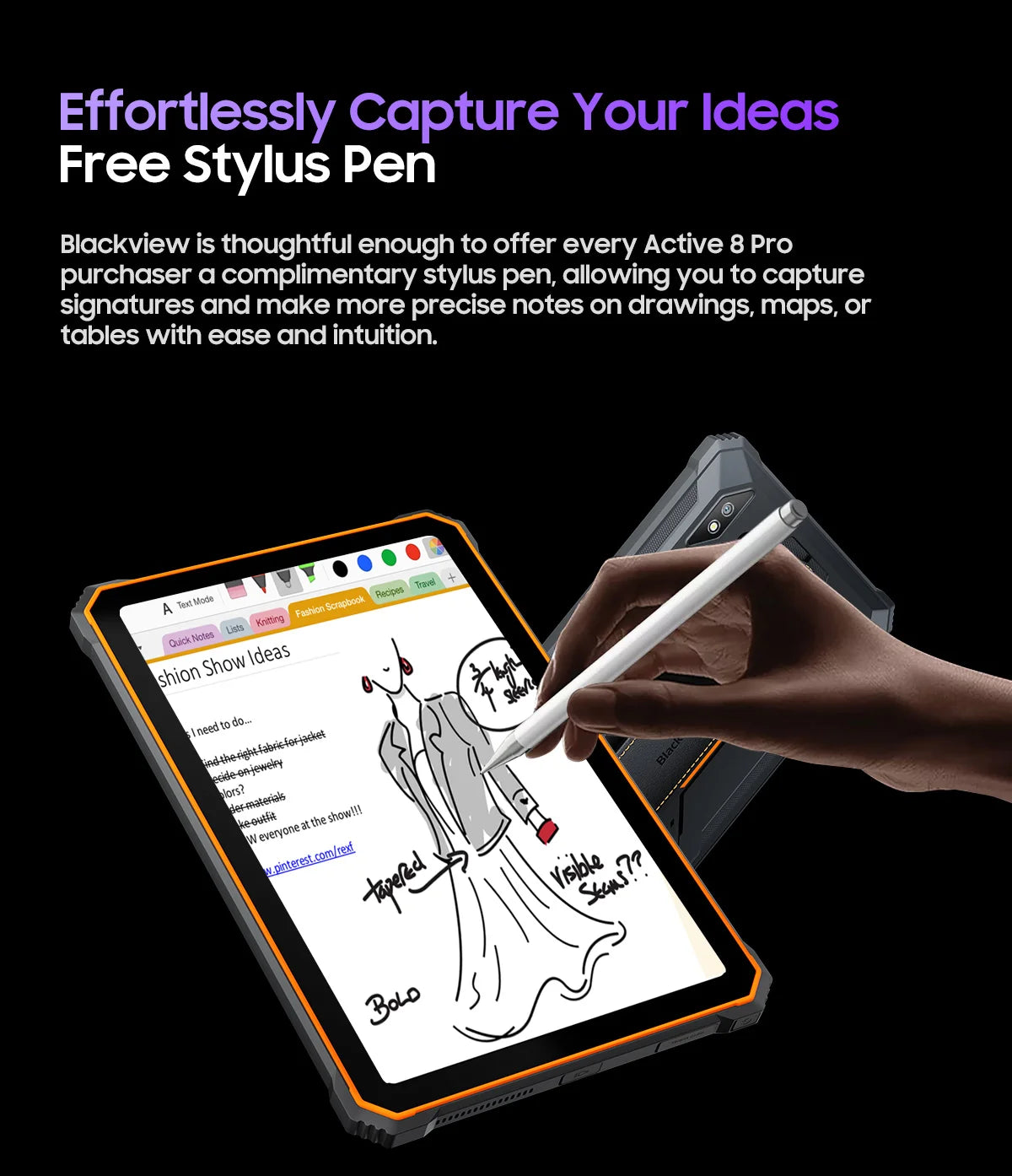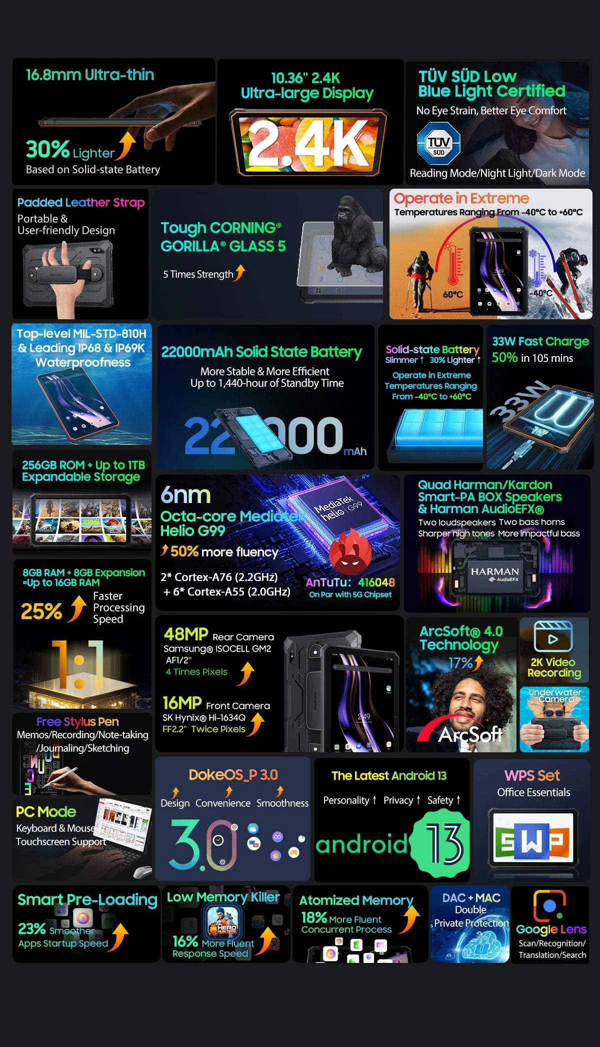Tablette PC Blackview Active 8 Pro 16 Go 256 Go Batterie 22 000 mAh Android 13 Écran 2,4 K 10,36 pouces Caméra 16 Mpx + 48 Mpx Tablette robuste
