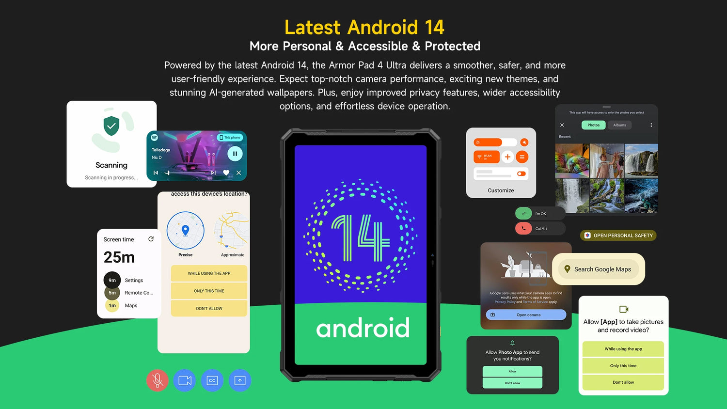 L'Armor Pad 4 UItra est doté d'une énorme batterie de 11 800 mAh, vous permettant de travailler et de profiter de vos divertissements pendant des heures sans avoir à chercher constamment un chargeur. De plus, la nouvelle batterie solide résiste au froid avec des performances fiables même à des températures glaciales allant jusqu'à -30 °C.