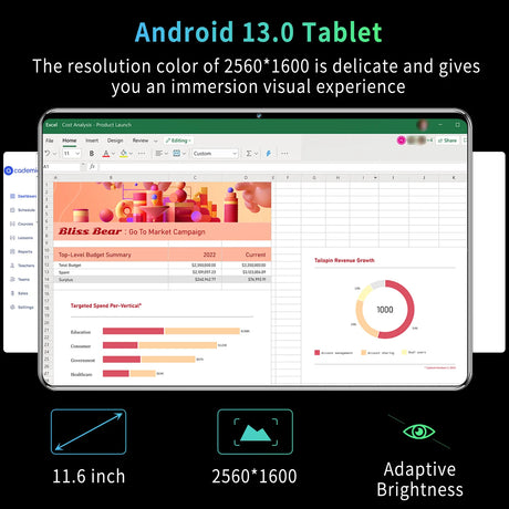 Tablette 5G 2024, 11,6 pouces, Android 13.0, Ph...