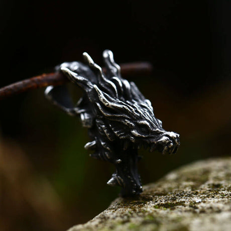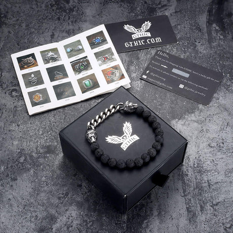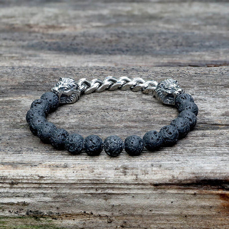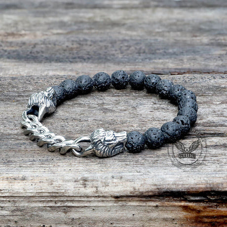 Dragon Head Volcanic Stone Stainless Steel Bead...