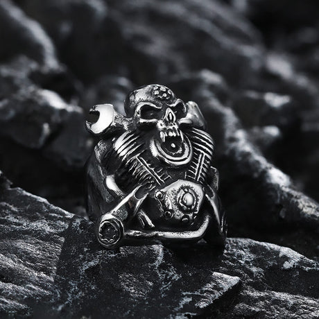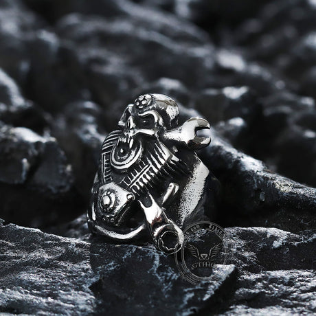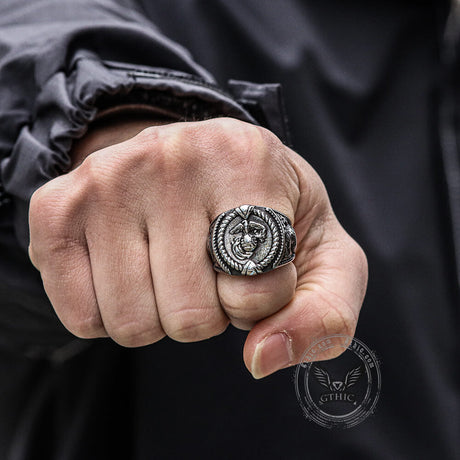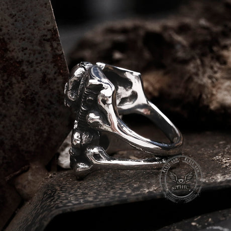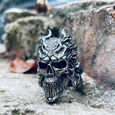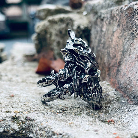 Dragon Horned Samurai Stainless Steel Skull Ring