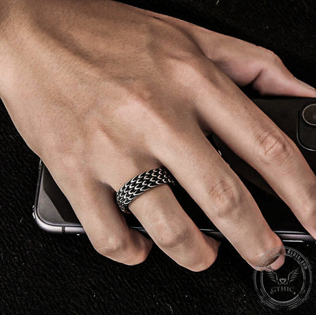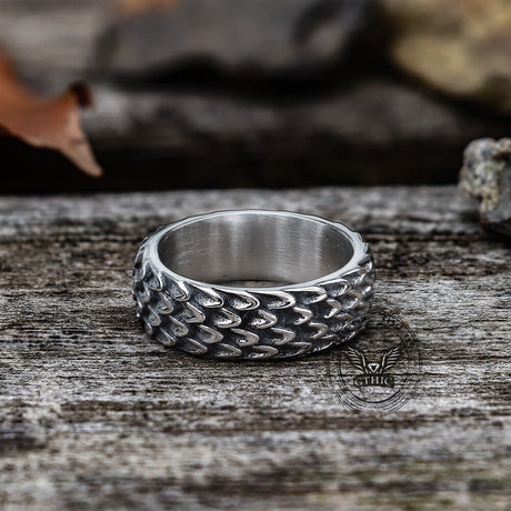 Dragon Scale Pattern Stainless Steel Cross Ring